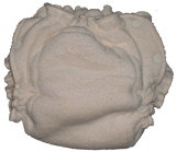 - Popper or hook and loop for ease of fastening, or terry fabric fastened with a Nappi Nippa for best containment.